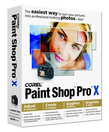 Image: Corel Paint Shop Pro X software packaging. This image displays the product box, indicating the software version and brand.