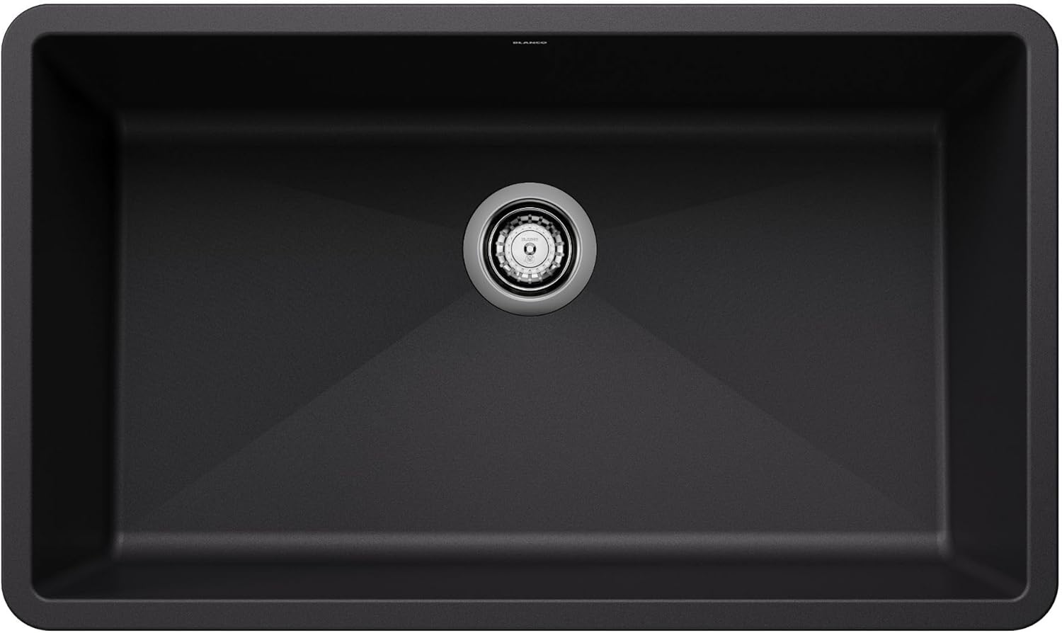 Şekil 1: Yukarıdan aşağıya view of the BLANCO Precis Super Single Kitchen Sink in Coal Black, showcasing its spacious single bowl and integrated drain.
